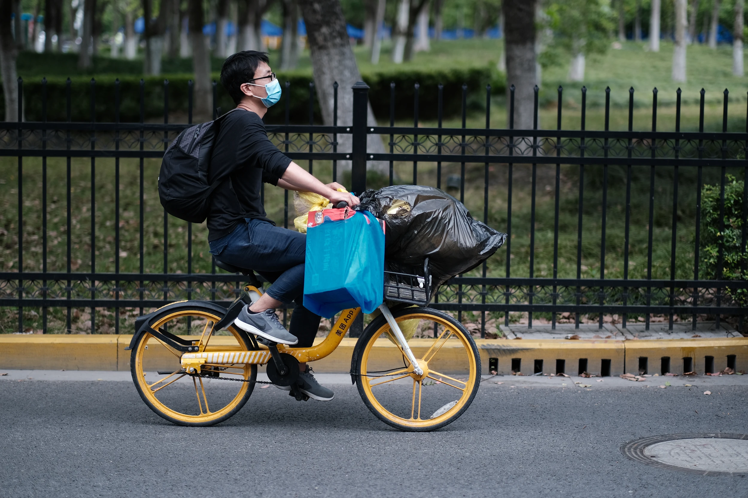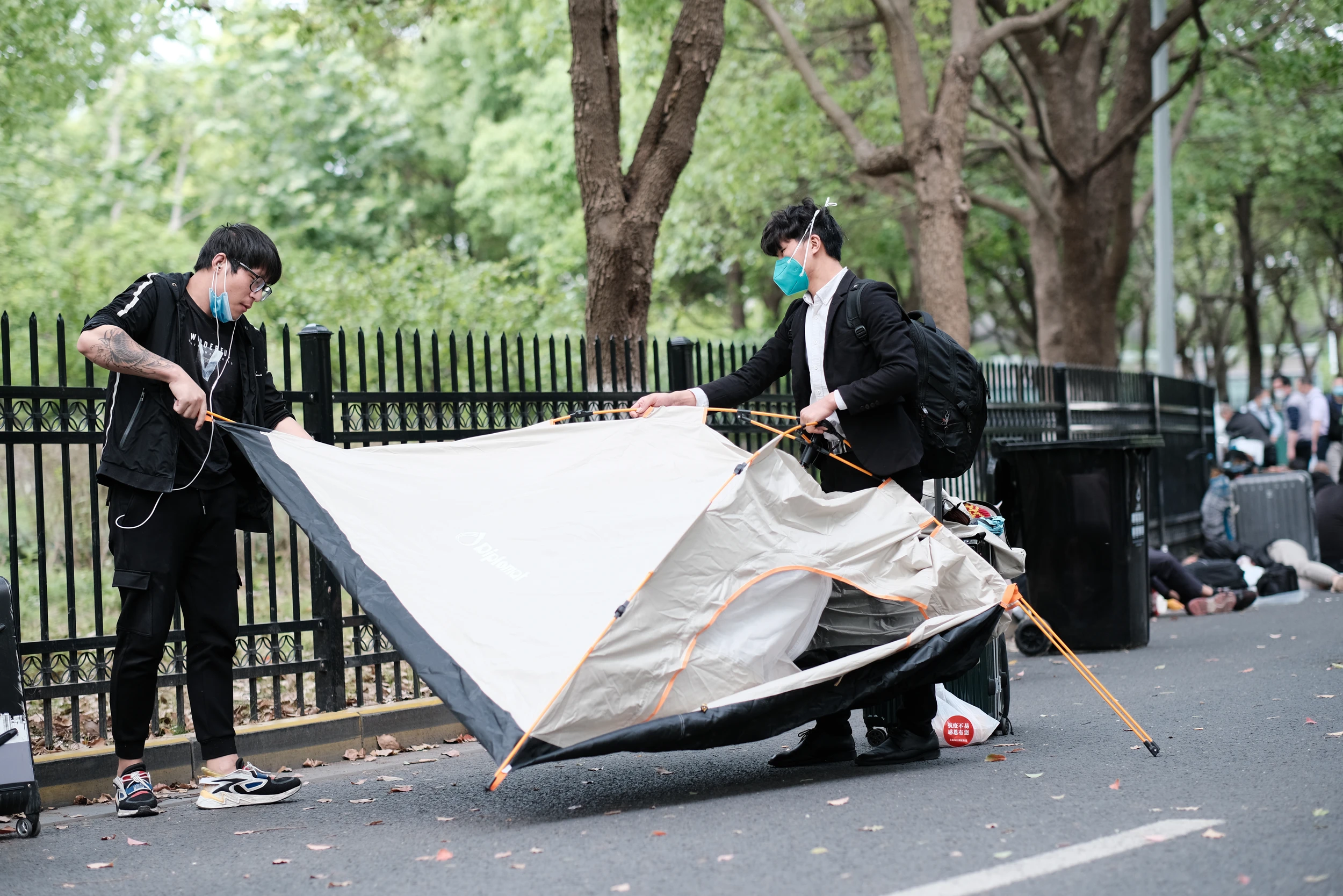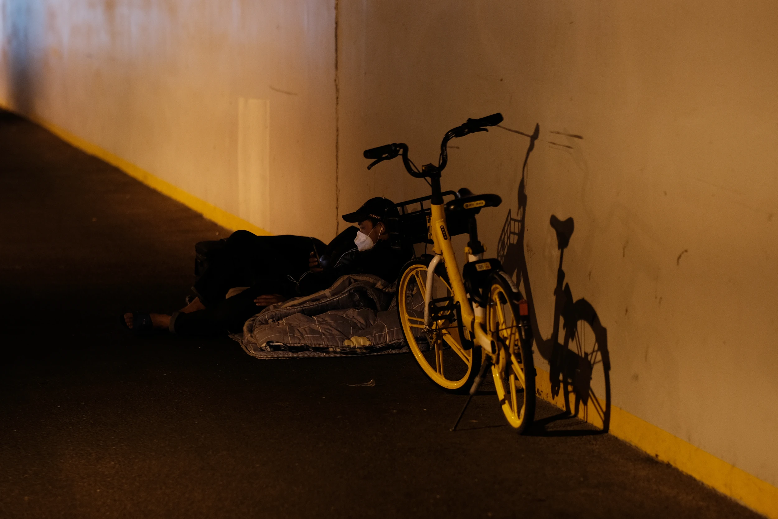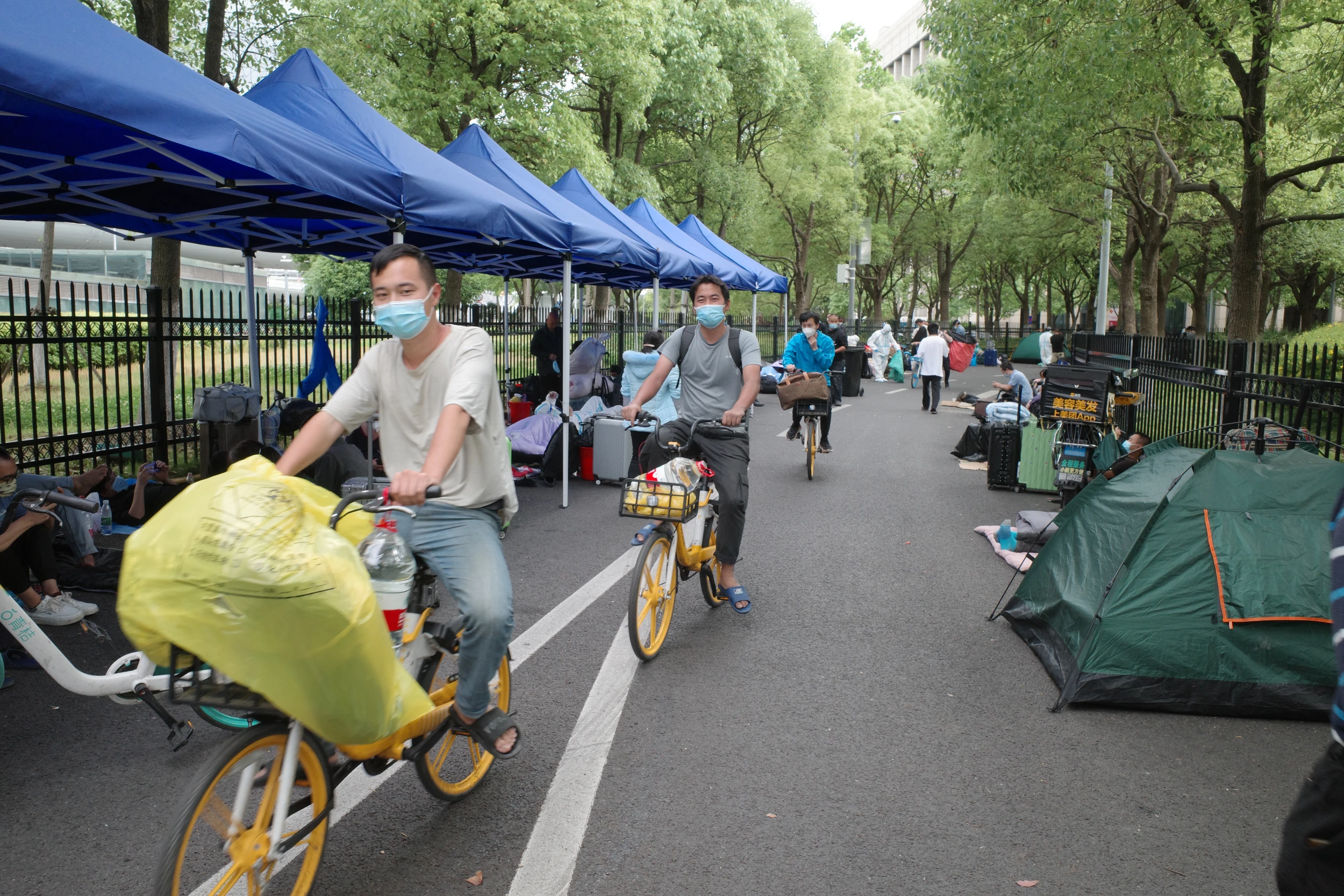 因为没法再回到地铁站,于是骑车去三站之外乘车。路上遇到了另外一些滞留露营的人,祝他们都早日回家!