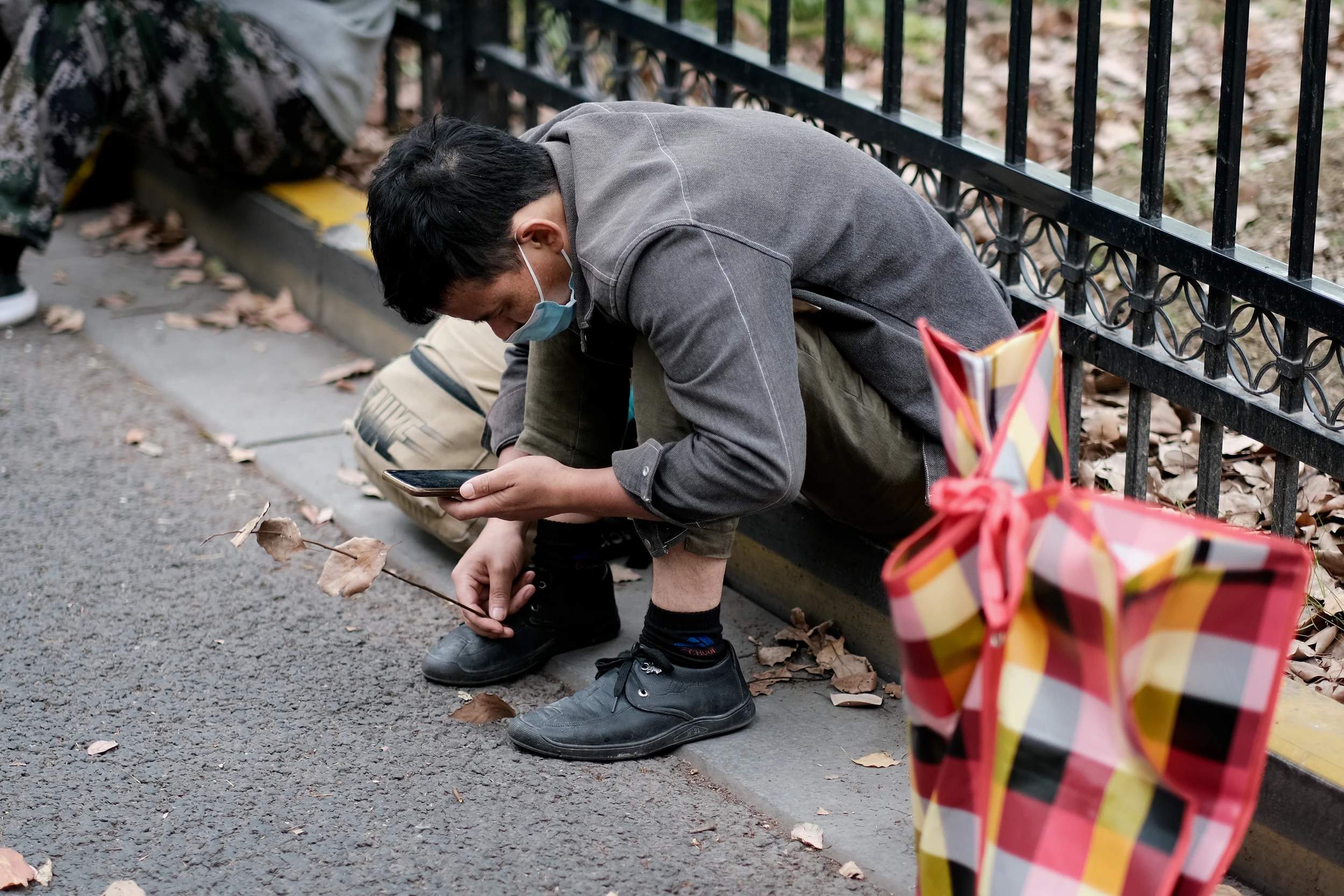 此时正坐在路边全神贯注打游戏的是小孙。他的目的地是襄阳。和老蔡一样,也是三月来的上海,来玩,住在哥哥那里。