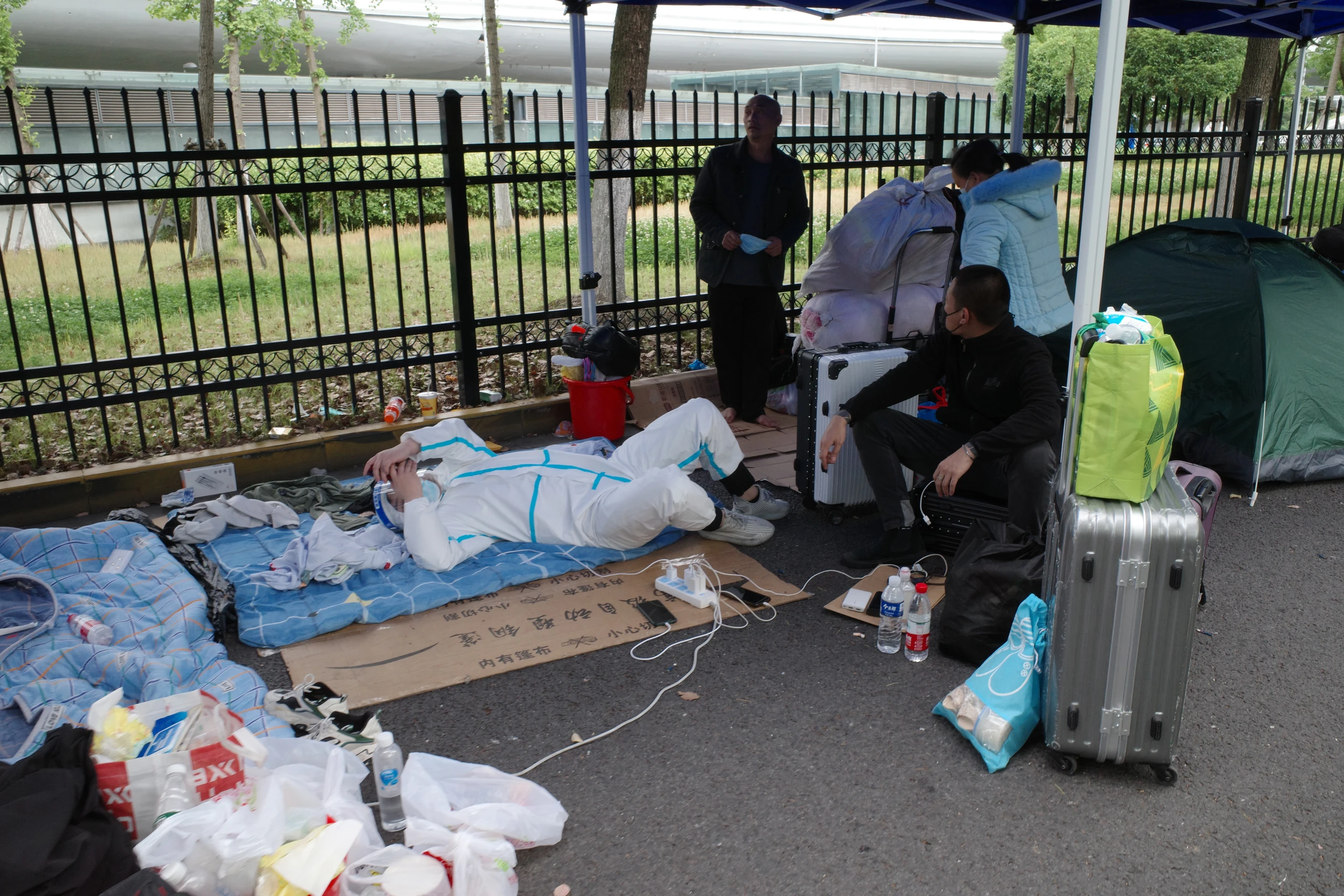 老蔡说,虽然到苏州还是得隔离,但日子是确定的。在上海的话,不知道什么时候是个头。票是明天早上七点的。因为之前听说进站要两个多小时,所以今天就来了,准备在这过夜,保险一些。